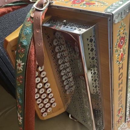 • Steirisches Akkordeon (diatonisch), Hohner Alpina III (inkl. Koffer) • Saltarella, einreihig mit 4 Registern (inkl. Koffer) • Hackbrett • Viele Noten und Literatur für alle 3 Themen vorhanden